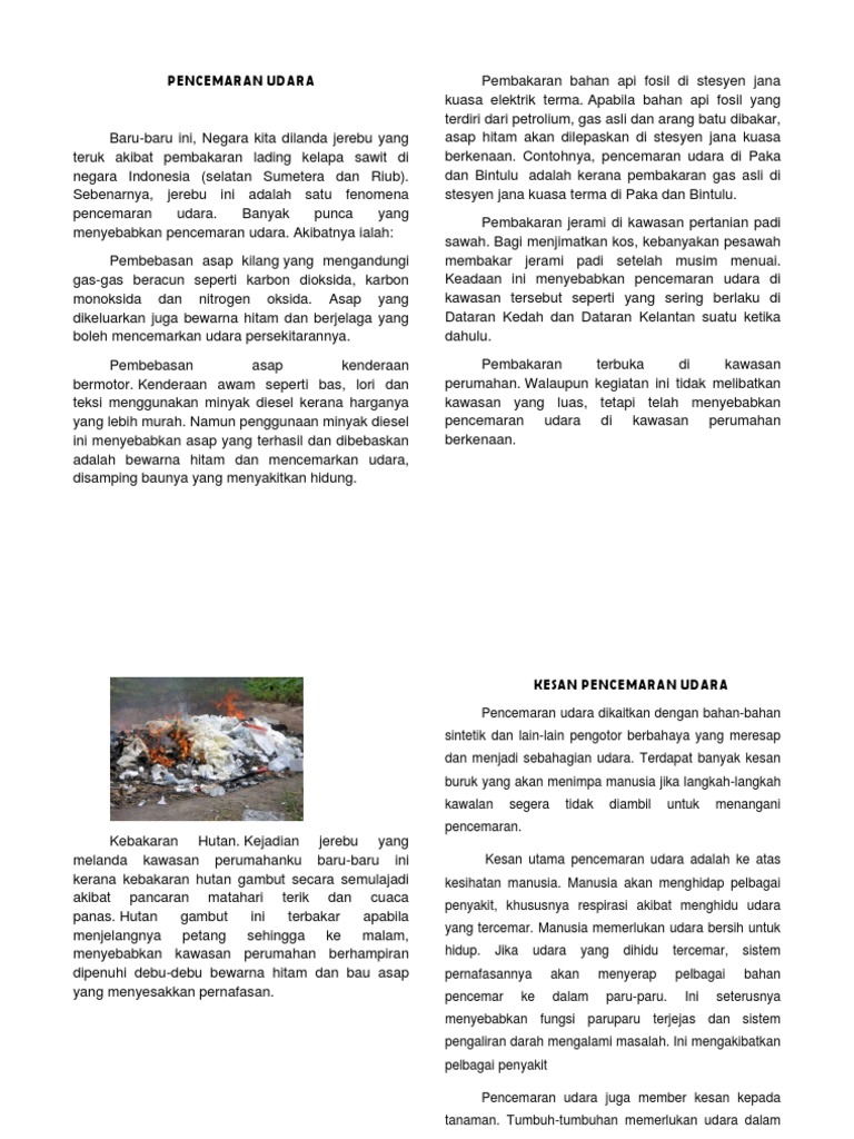 1.2 hektar hutan di bukit beruang terbakar. Data tersebut menunjukkan bahwa fenomena kebakaran hutan/lahan bukanlah spesifik indonesia dan bahkan lebih parah di negara lain. Pembakaran terbuka di blok perumahan polis kaw desa tasik sungai besi. Di sebuah komplek perumahan yang tidak begtu elit di jakarta timur tinggal seorang anak bernama bayu. Kedua, pembakaran lahan di kawasan gambut dapat mengurangi atau menurunkan keasaman.